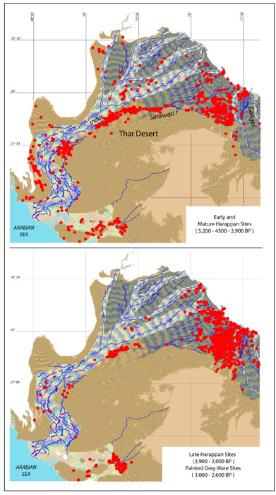 A new study combining the latest archaeological evidence with state-of-the-art geoscience technologies provides evidence that climate change was a key ingredient in the collapse of the great Indus or Harappan Civilization almost 4000 years ago. The study also resolves a long-standing debate over the source and fate of the Sarasvati, the sacred river of Hindu mythology.