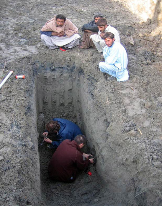 The research was conducted between 2003 and 2008 in Pakistan, from the coast of the Arabian Sea into the fertile irrigated valleys of Punjab and the northern Thar Desert. The international team included scientists from the U.S., U.K., Pakistan, India, and Romania with specialties in geology, geomorphology, archaeology, and mathematics. By combining satellite photos and topographic data collected by the Shuttle Radar Topography Mission (SRTM), the researchers prepared and analyzed digital maps of landforms constructed by the Indus and neighboring rivers, which were then probed in the field by drilling, coring, and even manually-dug trenches. Collected samples were used to determine the sediments’ origins, whether brought in and shaped by rivers or wind, and their age, in order to develop a chronology of landscape changes.
